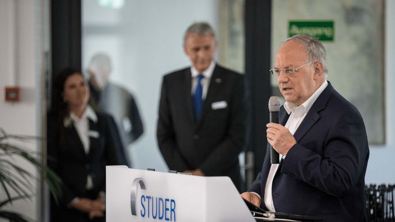 Die Fritz Studer AG beschäftigt 77 Lernende, was 10 Prozent der gesamten Belegschaft ausmacht. Somit ist der Rundschleifprofi der wichtigste Ausbildner der Region. Ein Engage-ment dass auch den Wirtschaftsminister beeindruckt, welcher sich stark macht, die World Skills, also den internationalen Berufswettbewerb, in die Schweiz zu holen. Schneider-Ammanns Rede machte deutlich: Sich für die produzierende Industrie und die Berufsbildung stark zu machen, ist ihm eine Herzensangelegenheit, die er mit dem Besuch der Fritz Studer AG seinen Parteikollegen näher bringen konnte.