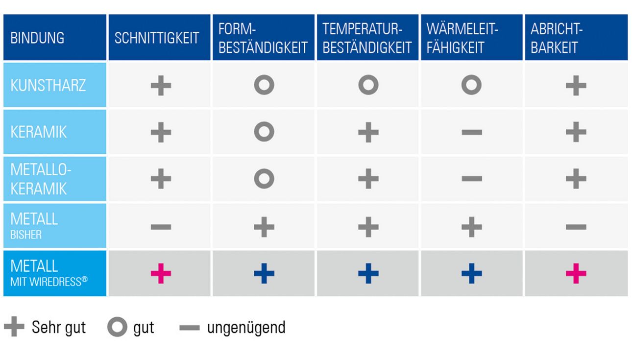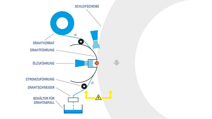 WireDress® ermöglicht völlig neue Möglichkeiten beim Schleifen mit metallgebundenen CBN- und Diamantschleifscheiben: Die elektroerosiv-integrierte Abrichttechnologie spart nicht nur massiv Nebenzeiten, sie ermöglicht Sinter-Metallbindungen mit der höchsten Präzision in der Schleifmaschine bei voller Arbeitsgeschwindigkeit abzurichten.