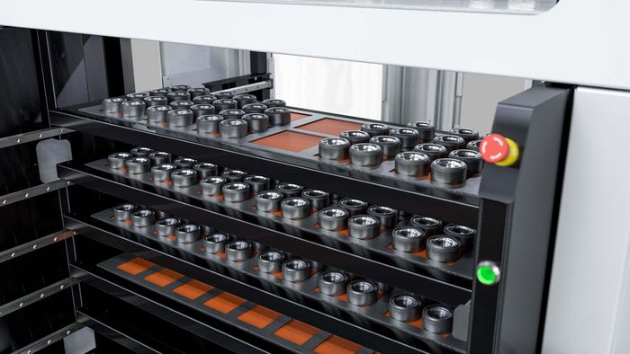 That is why STUDER has now developed the roboLoad, an external loader that with a width of 1.50 meters (59,06") is only half as wide as the machine itself. "This is not insignificant," emphasises Schafroth, "Because the floor space in modern production halls has to be used efficiently." In this comparatively small space, the roboLoad offers plenty of room for workpieces on six trays, each measuring 1080 x 320 millimetres (42,52 x 12,6”).