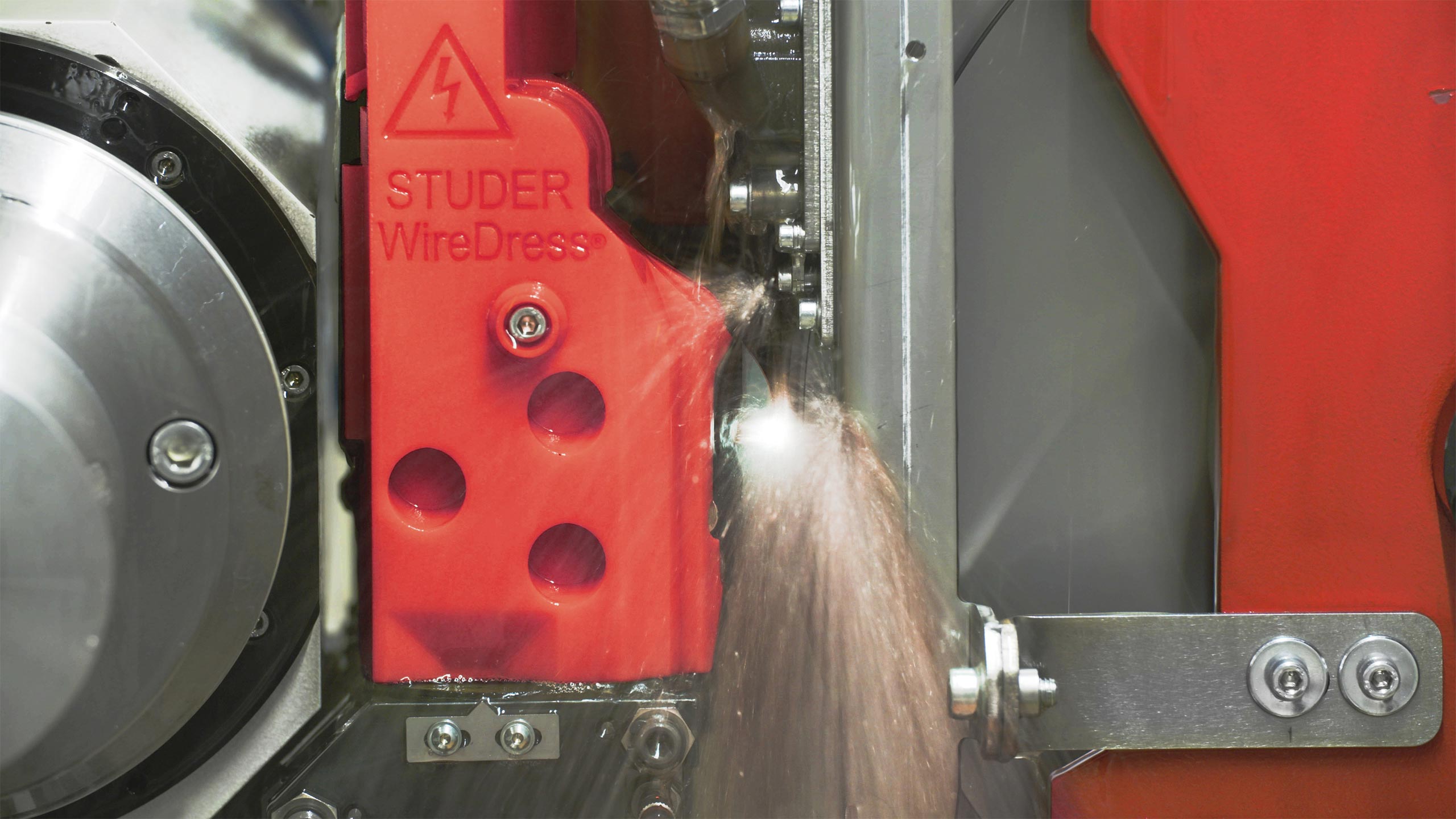 Completely new possibilities in grinding with metal bonded CBN and Diamond wheels: This is made possible by WireDress® from STUDER. Not only does this innovative, electro erosive integrated dressing technology save massive downtime, it also enables sintered metal bonds to be dressed with the highest precision in the grinding machine at full wheel speed.