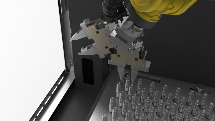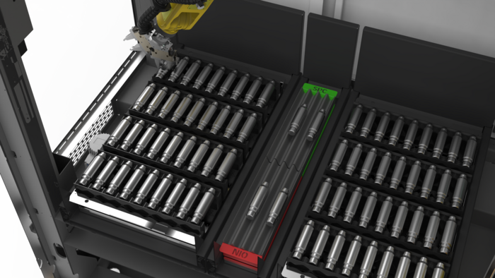 Le nouveau chargeur STUDER combine les avantages d’un système standardisé avec une grande flexibilité. Il est ainsi compatible avec les pièces les plus diverses en matière de géométrie, de poids et de dimensions ; les rectificateurs peuvent aussi adapter la capacité des tiroirs de chargement et le degré d’autonomie. Le chargement et le déchargement est pris en charge par un robot Fanuc qui se déplace de manière autonome sur un axe linéaire entre le chargeur et l’espace de travail de la machine. En général, l’autonomie moyenne sans aucune intervention humaine au niveau du système de commande est de l’ordre de trente à soixante minutes.