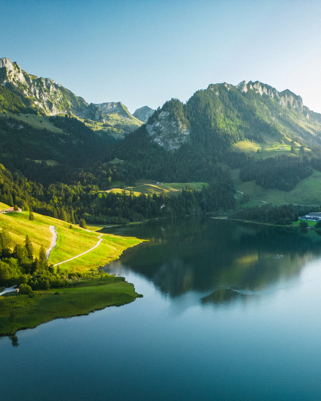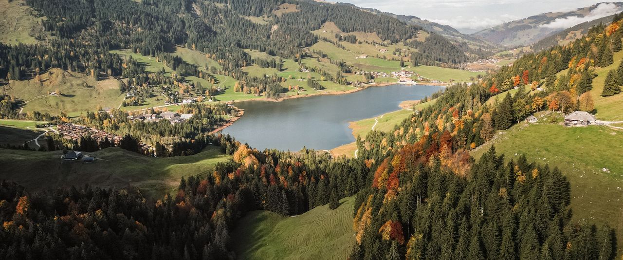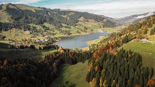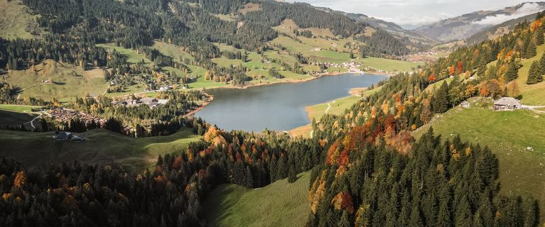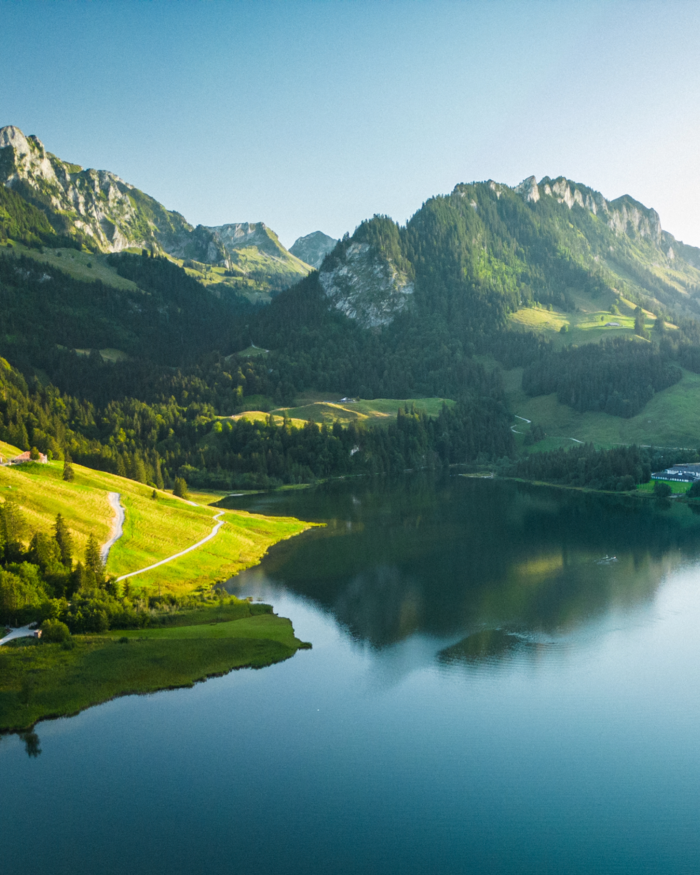黒い湖という意味のシュヴァルツゼー(シュヴァルツ湖)は、フリブール・プレアルプス地方の山々に囲まれた谷間にあり、その名のように深い色の水をたたえた湖と氷河によって形成された深い谷が景観が織り成す、ワイルドで幻想的な絶景で知られています。