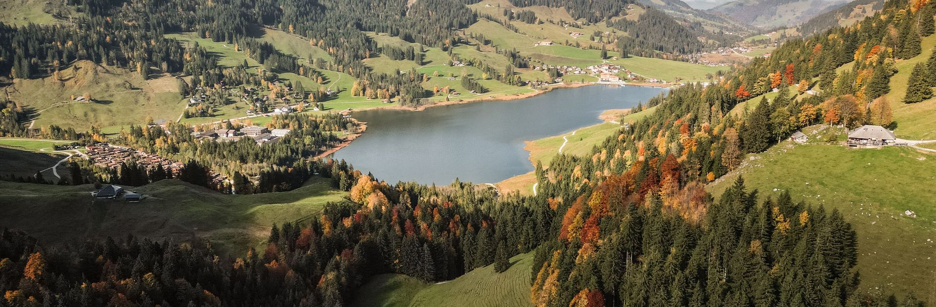 プラファイエンPlaffeienとヤウンJaunの間に位置し、西にシュヴィーベルクSchwyberg(1645m)、レ・レカルデ Les Reccardets(1923  m)、スピッツフルーSpitzflue(1954m)、オイシェルス峠(1567m)、南にブレッカ・シュルンドBreccaschlund、東にカイザーエックKaiseregg(2185m)と山々に囲まれています。