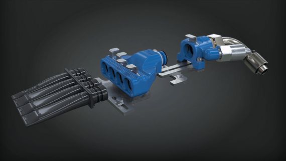 이를 위해 개발된 SmartJet® 노즐은 최첨단 기술입니다. 디자인은 평평하고 내부에는 냉각제를 전체에 걸쳐 고르게 분배하도록 여러 개의 채널이 인접해 있습니다. 필요한 경우 뒤쪽의 분배기 유닛에 노즐을 여러 개 연속으로 추가할 수 있습니다. 디자인이 복잡하므로 SmartJet® 노즐 및 분배기는 장크트 갈렌 소재의 자매 회사인 IRPD에서 3D 프린팅 공정을 사용하여 제작합니다. 스마트 냉각 컨셉은 모듈식 솔루션으로 고안되었습니다. 퀵 체인지 시스템이 있어서 개별 구성품을 아주 빠르게 재결합할 수 있습니다.